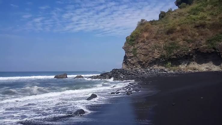 Pantai Dampar dengan Pasir Hitam dan Tebing Tinggi di Lumajang --