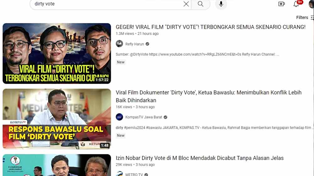 Misteri di Balik Tidak Munculnya Film Dirty Vote di Hasil Pencarian YouTube