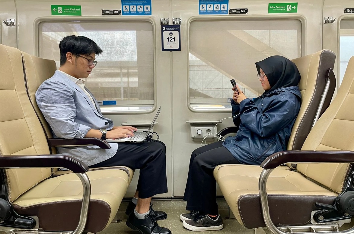 Stop kontak di kereta api hanya boleh digunakan untuk peralatan elektronik seperti ponsel, tablet atau laptop.--pt kai