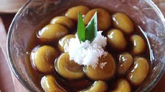 biasanya dimakan dengan kuah gula merah yang dicampur dengan tepung beras.