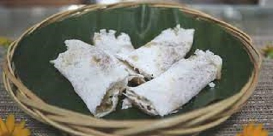 kue ini mirip seperti lumpia yang dibungkus daun pisang.