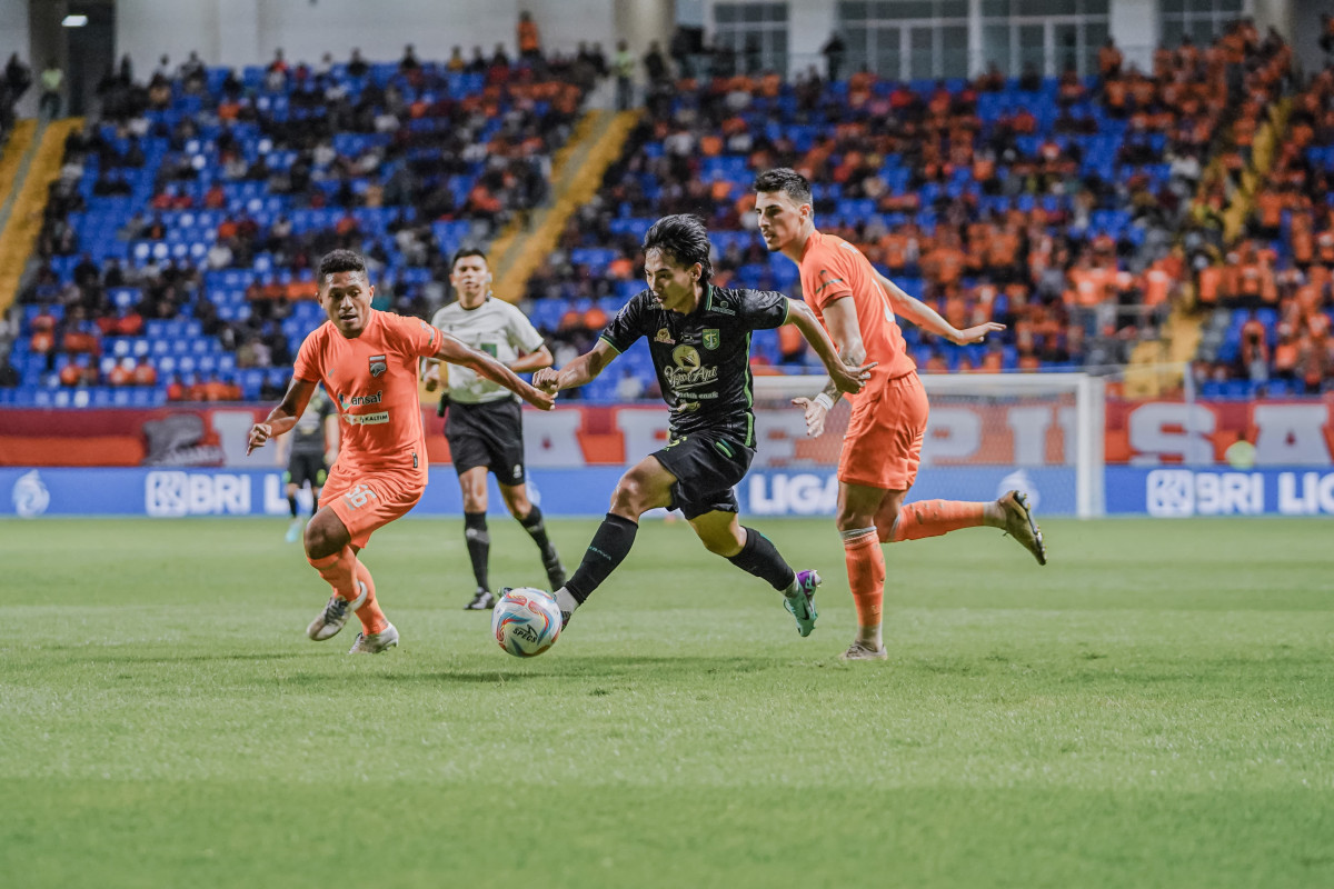 pemain persebaya berusaha melepaskan diri dari kawalan pemain borneo fc.-persebaya-