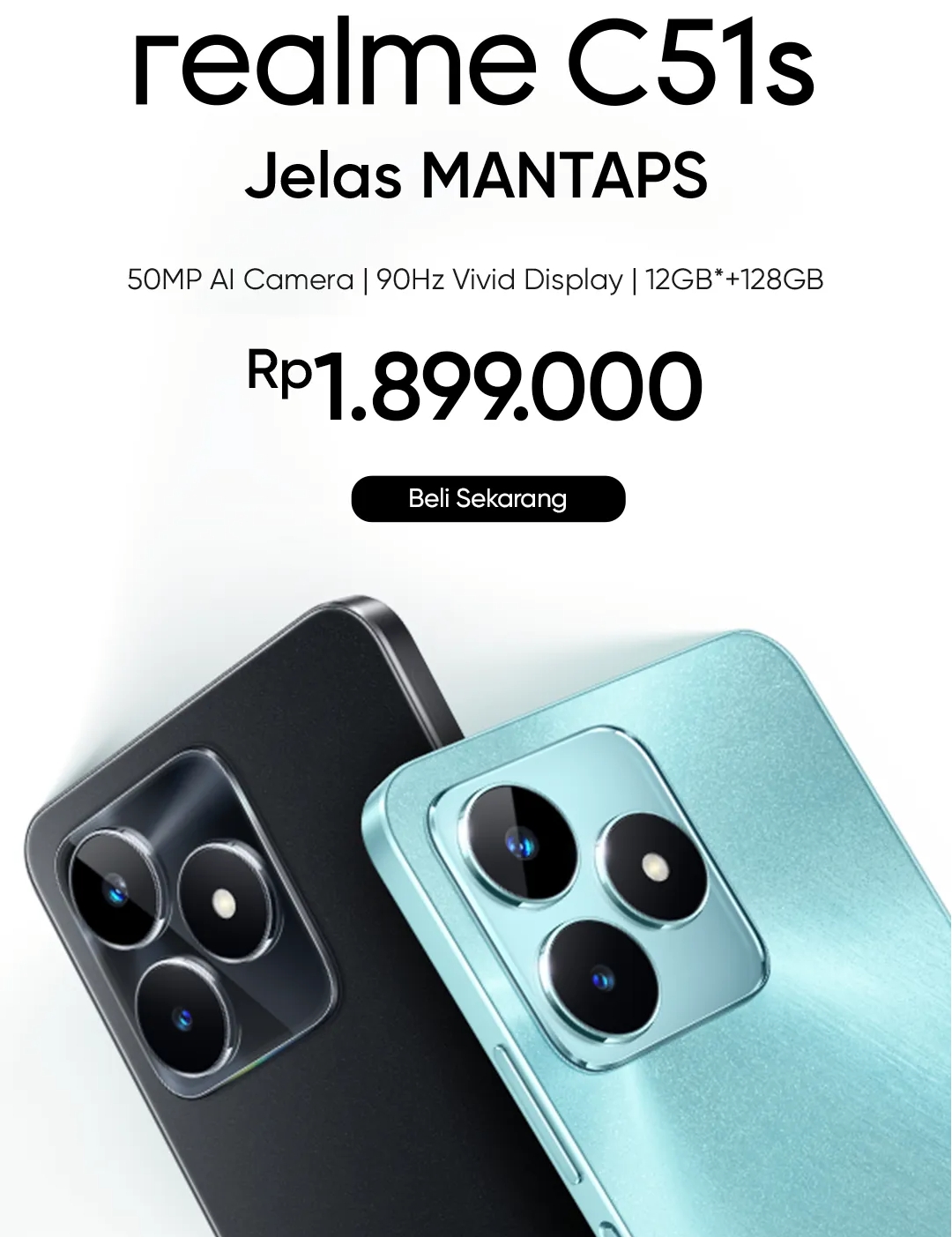 BACAKORAN.CO - Realme, produsen smartphone yang semakin populer di Indonesia, meluncurkan model terbaru mereka, Realme C51s.