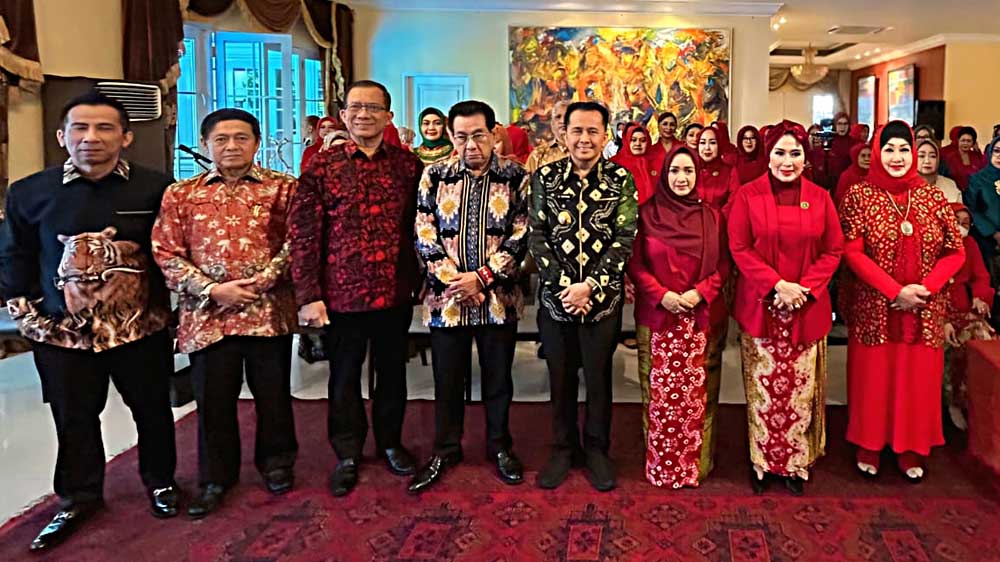 Tokoh Masyarakat Sumsel, Anwar Fuadi, Sesepuh PWP-Sumsel Hj Delima Tatung, Penasehat PWP-Sumsel Hj Nani Djoko Ketawang, Ketua Bidang III TP PKK Provinsi Sumsel Desy Kasnayati dan Ketum Tenaga Pembangunan Sriwijaya Dr Sudirman.gbr.bacakoran--