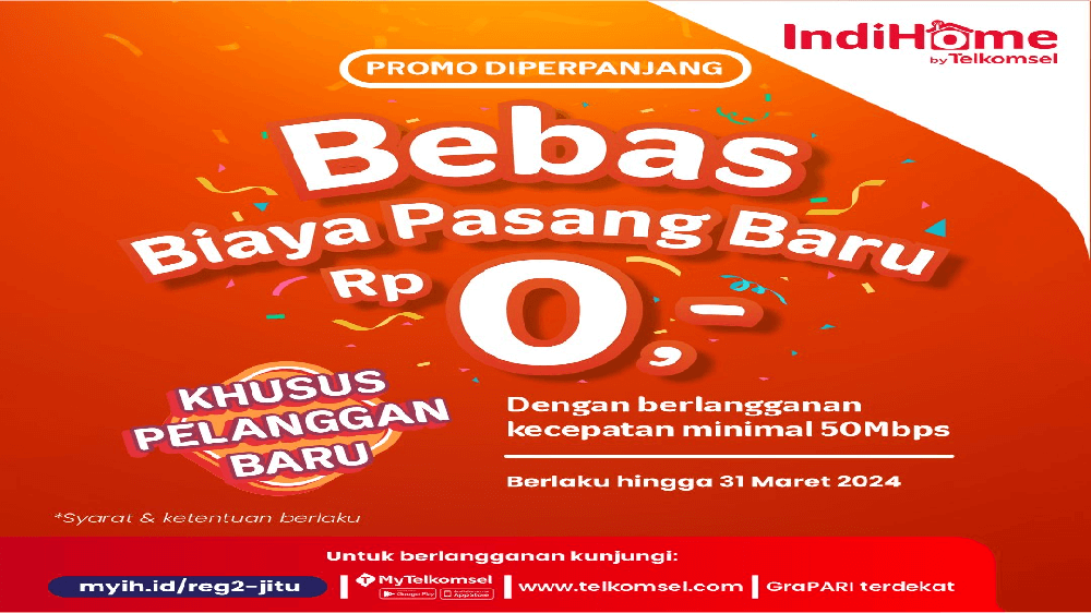 Kali ini pihak IndiHome akan memberikan promo khusus biaya pasang Rp 0 untuk berlangganan kecepatan minimal 50Mbps untuk pengguna baru.