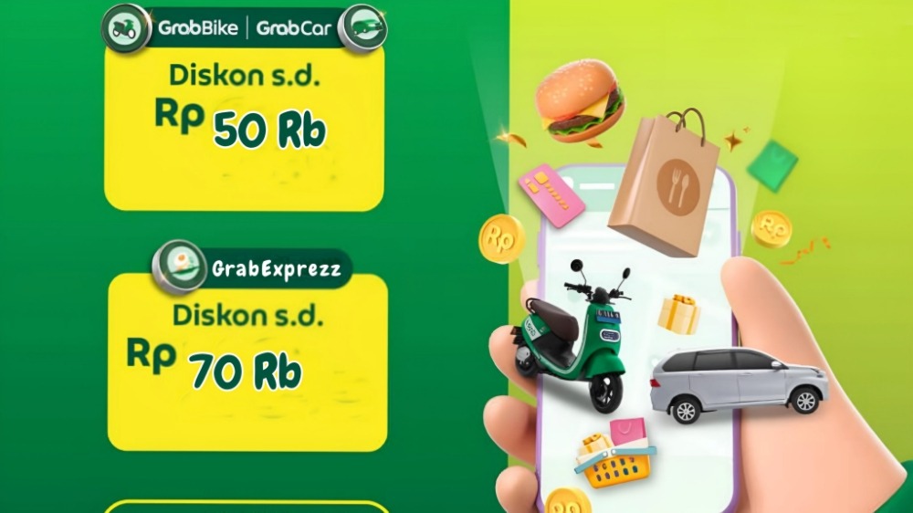 tak hanya itu, ada juga promo diskon sebesar rp70 ribu untuk layanan grabexprezz yang merupakan layanan pengiriman paket kilat dari grab.