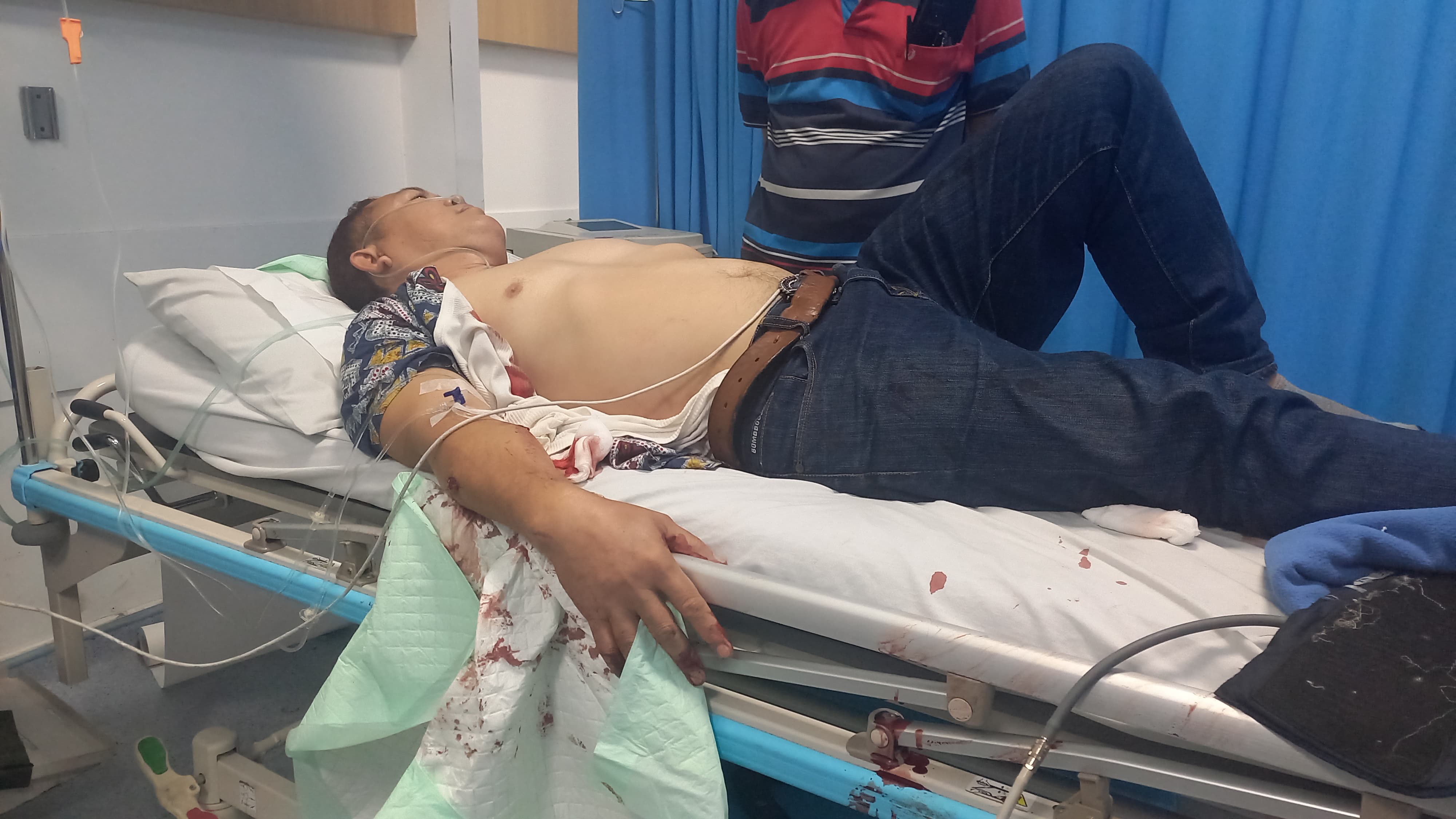 TERLUKA : Deddy, debt collector yang ditikam pegemudi moil yang diduga oknum polisi. (foto: adi/sumeks.id)--