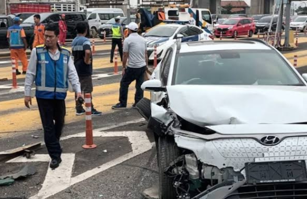 Kecelakaan terjadi di gerbang tol dan melibatkan lima kendaraan.