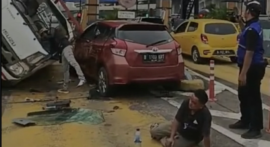 Akhirnya menabrak beberapa kendaraan yang sedang antre di gerbang tol.