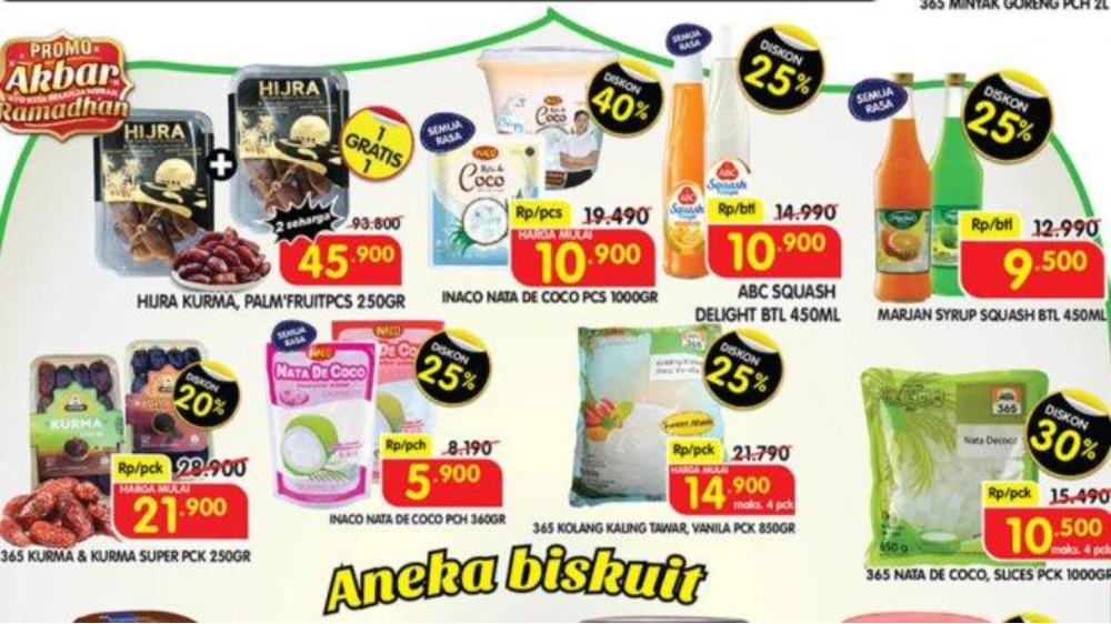 Spesial akhir pekan, banyak promo untuk aneka biskuit sirup sembako, parcel lebaran.