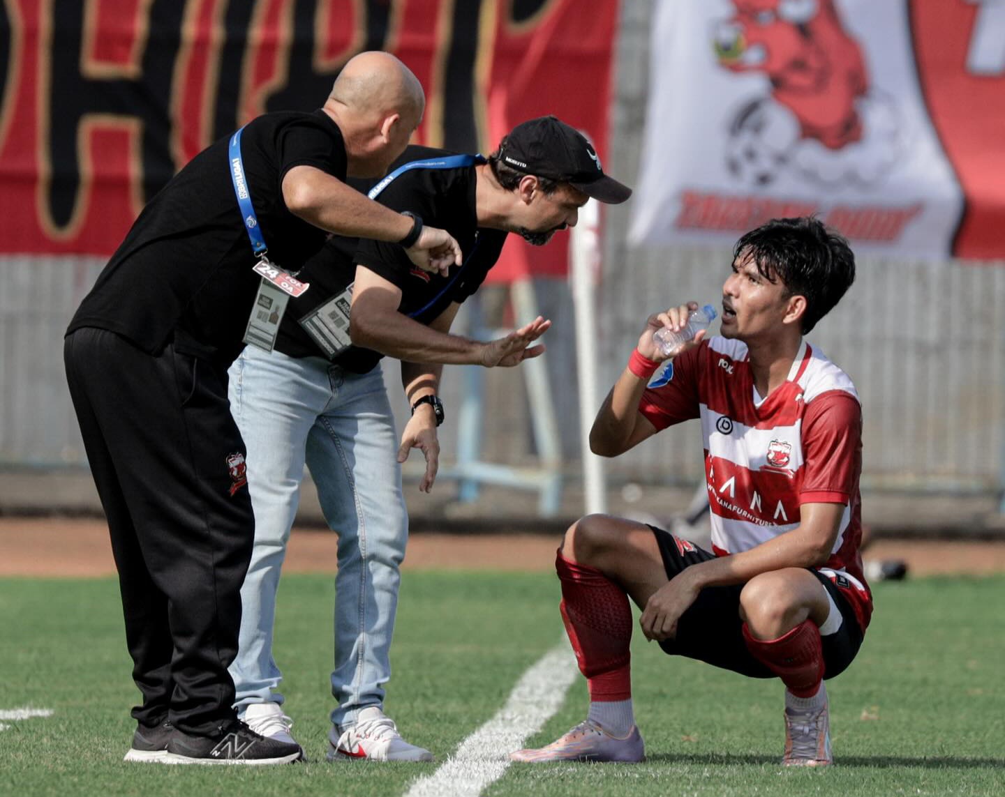 Pelatih MU Mauricio Souza saat berikan arahan ke pemain.-madura united-