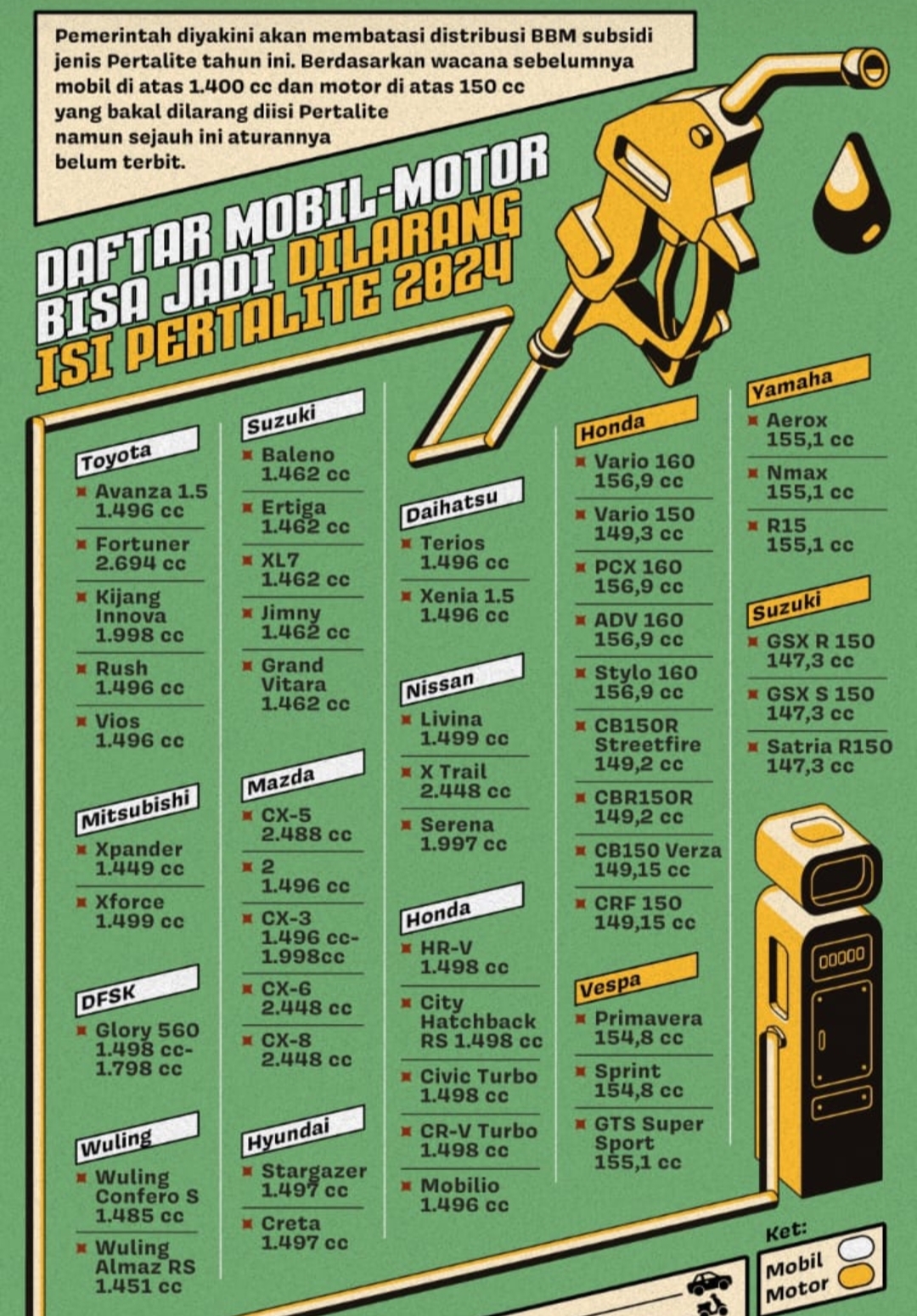 Ini daftar merek mobil dan motor dilarang isi Pertalite--