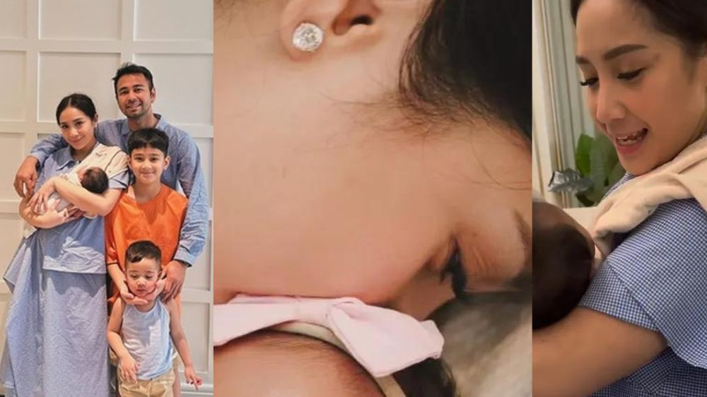 Pertama-tama, Raffi Ahmad memposting foto Nagita Slavina yang sedang menggendong bayi perempuan.