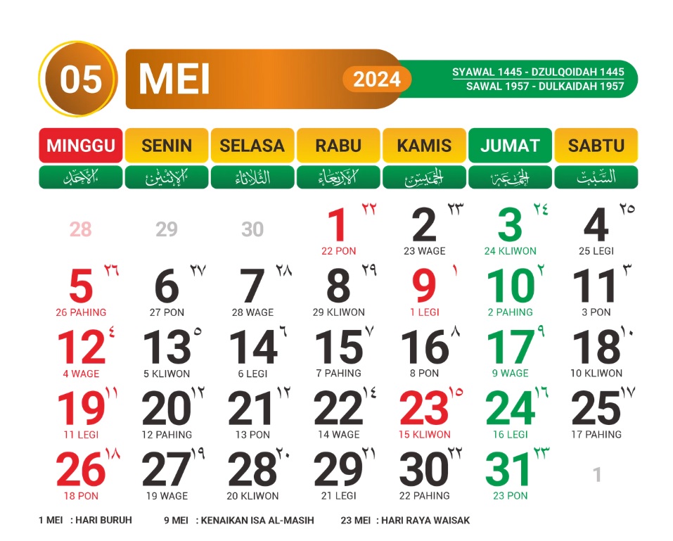 Daftar Hari Libur Nasional dan Cuti Bersama Mei 2024 telah ditetapkan melalui Surat Keputusan Bersama (SKB) Menteri Agama, Menteri