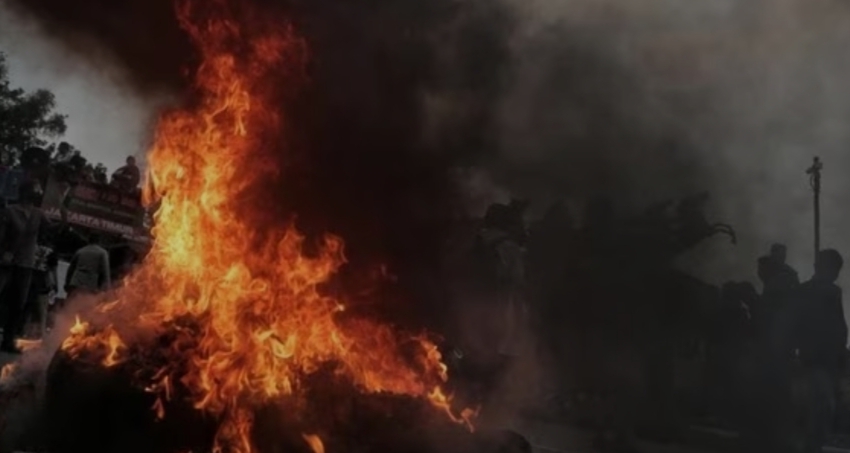 Aksi bakar mewarnai kericuhan dua kubu di Patung Kuda, Jakarta Pusat --