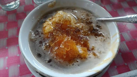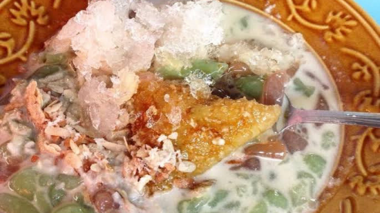 yang terdiri dari tepung beras yang dibuat menjadi adonan kental, lalu diberi sirap gula dan santan.