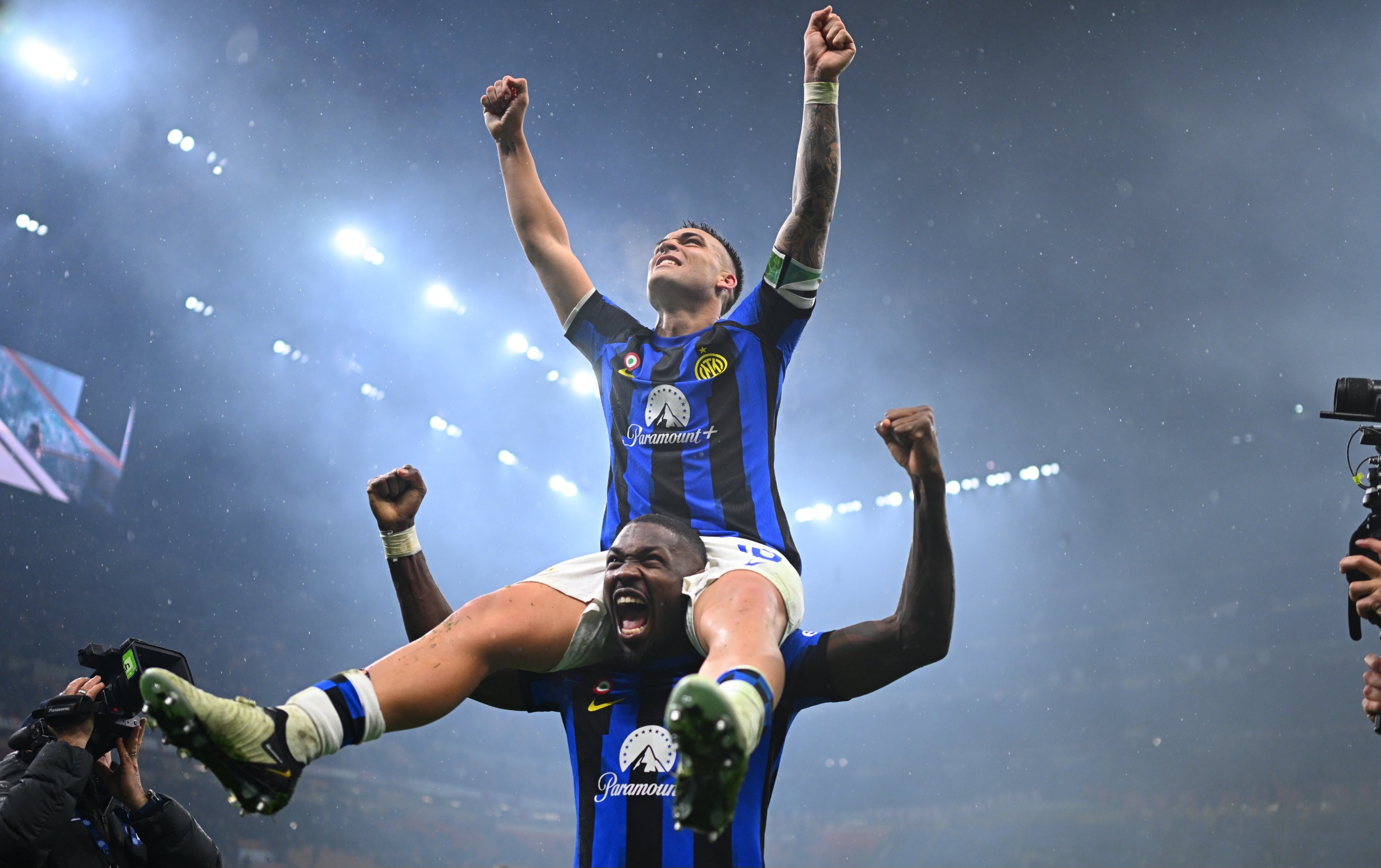 kapten inter milan lautaro martinez merayakan kesuksesan juara serie a bersama thuram. -x @inter-