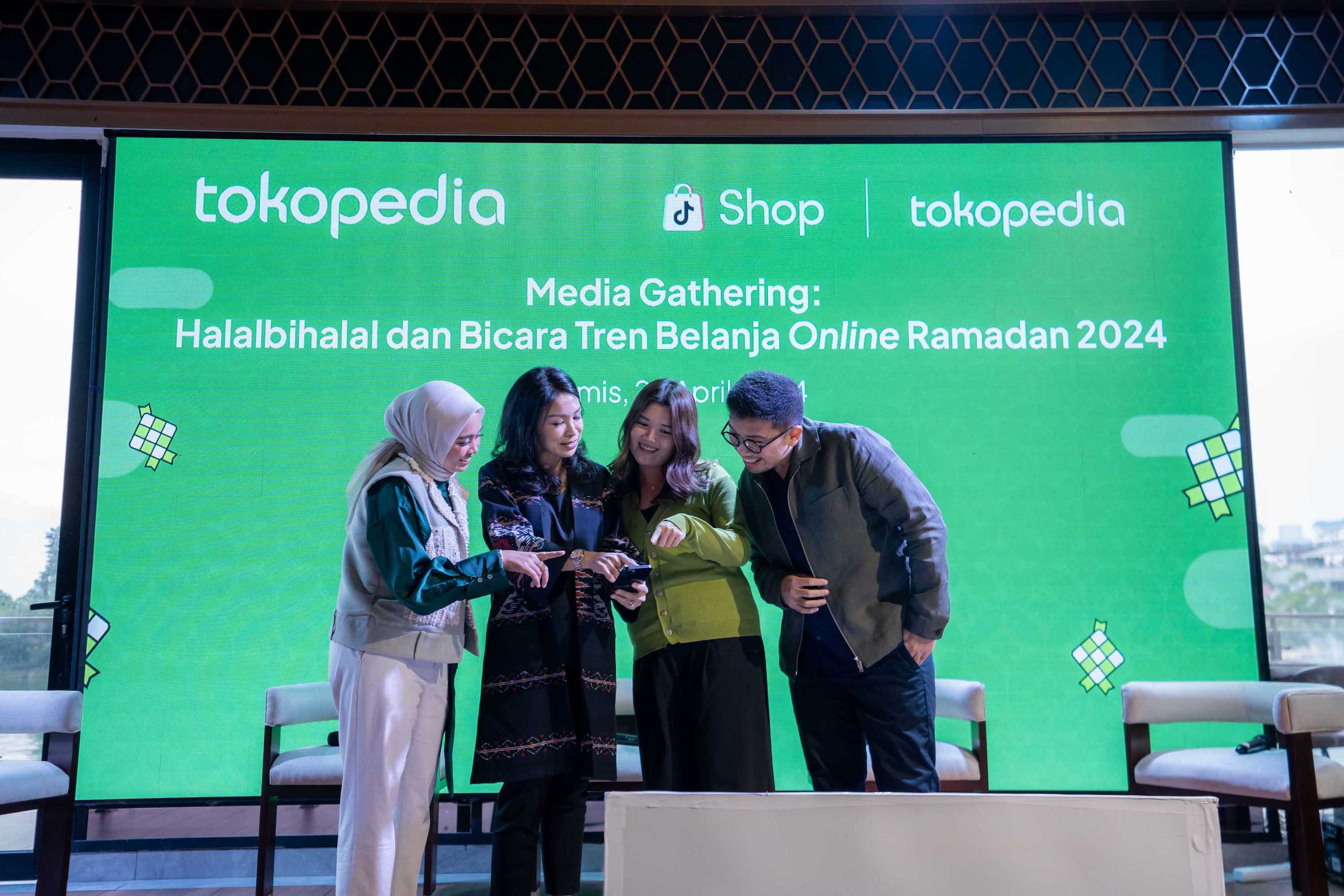 (ki-ka) Pemilik UsahaE-Commerce Communications Director Shop | Tokopedia, Nuraini Razak (dua dari kiri), bersama para pemiik usaha pada acara Tokopedia dan Shop | Tokopedia bertema Halalbihalal dan Bicara Tren Belanja Online Ramadan 2024 (25/04) .-tokopedia-