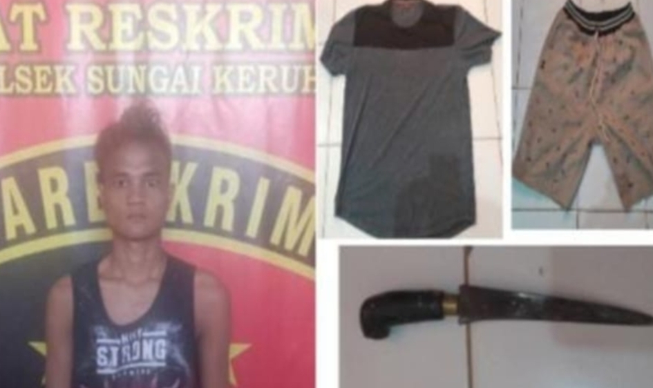 pelaku, teguh, telah ditetapkan sebagai tersangka dan sedang dalam proses penyidikan oleh unit reskrim polsek sungai keruh.