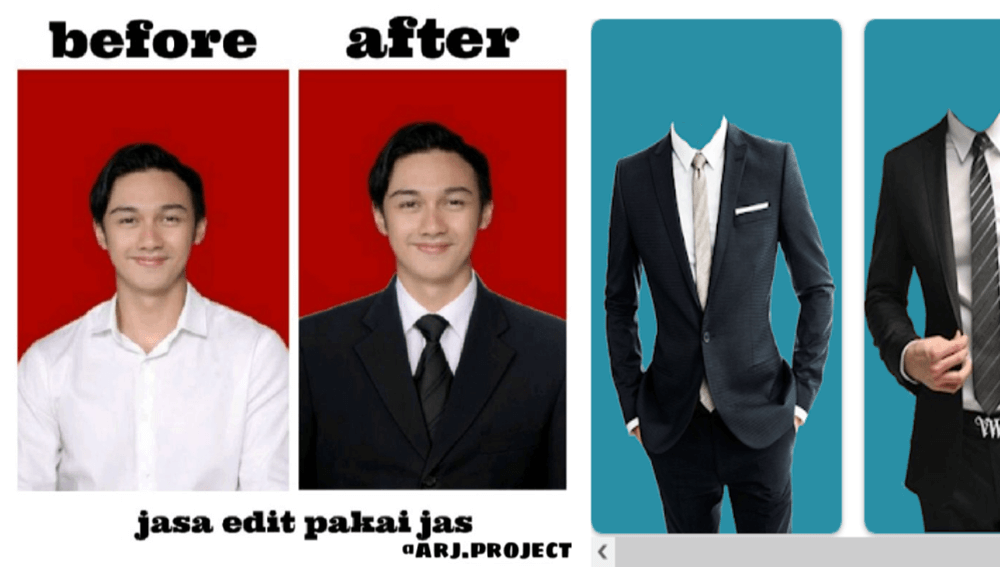 mengedit foto dengan memasukkan elemen seperti jas bisa memberikan tampilan yang lebih profesional dan menarik.