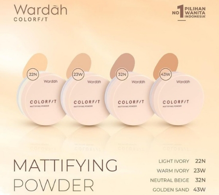 wardah colorfit mattifying powder membantu mengontrol minyak berlebih di wajah sehingga kulit terlihat segar dan matte sepanjang hari.