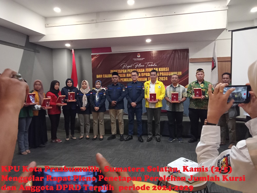ketetapan itu di sahkan dalam rapat pleno terbuka penetapan perolehan jumlah kursi dan calon terpilih anggota dprd kota prabumulih pada pemilihan umum tahun 2024 di fave hotel prabumulih, kamis sore, 2 mei 2024.