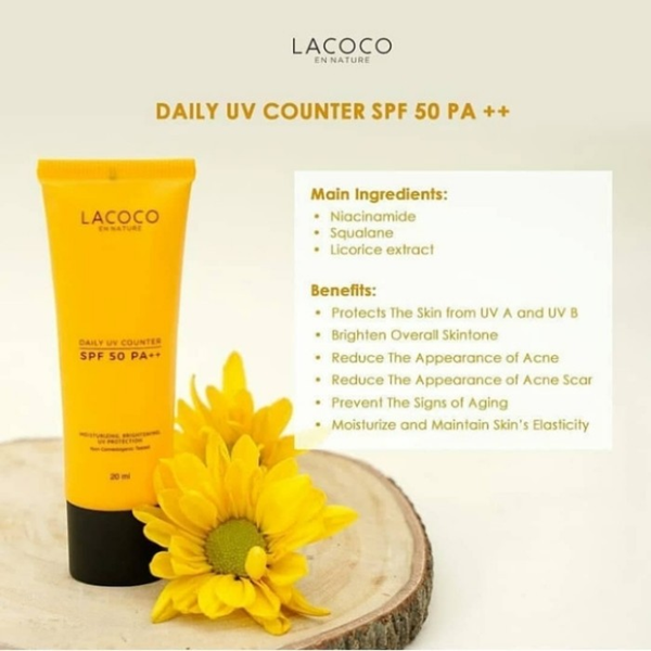 sunscreen lacoco daily uv counter spf 50 pa++++-gambar lacoco official store-