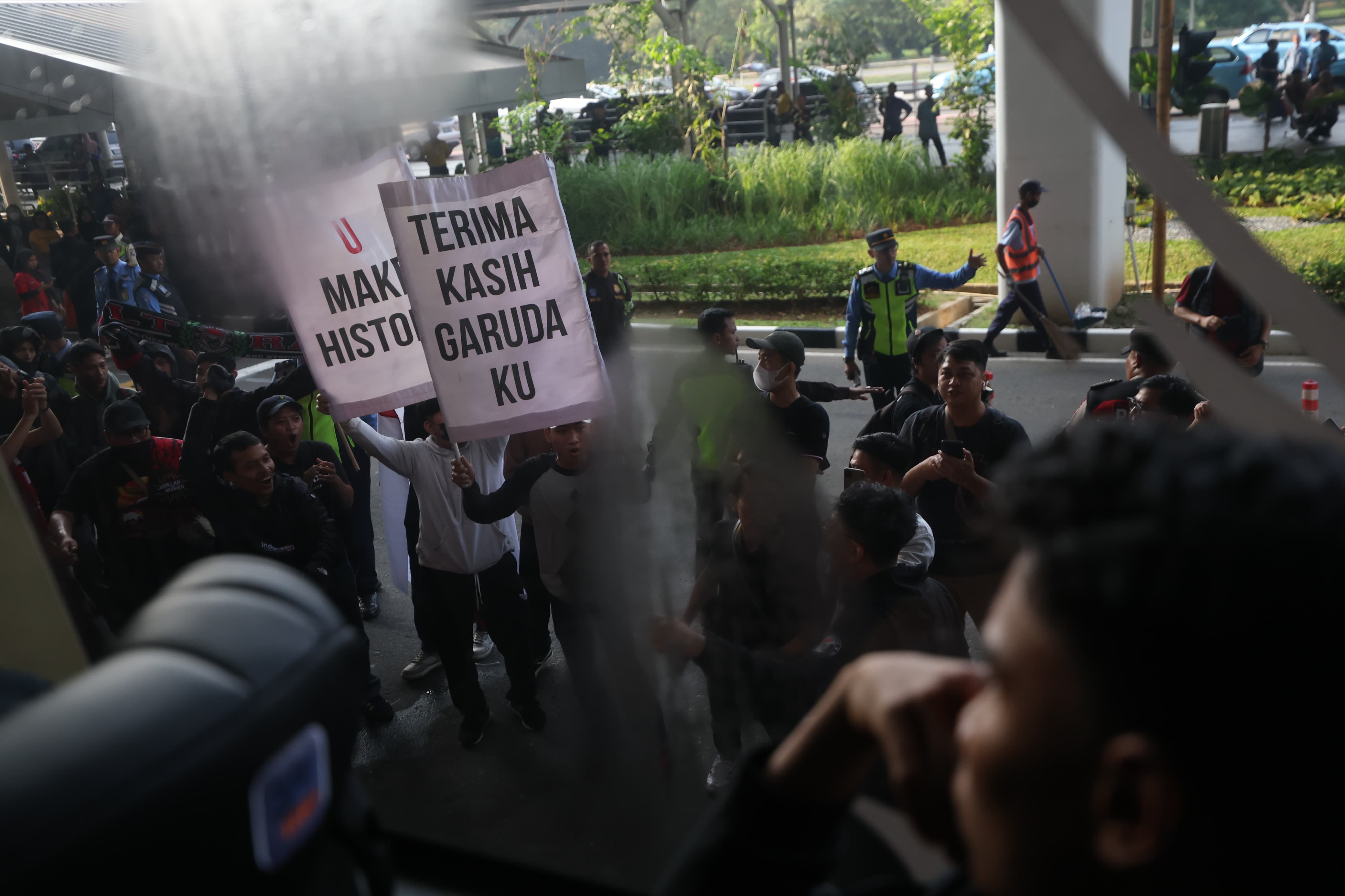 Ucapan terima kasih dari suporter yang menyambut kedatangan Timnas Indonesia U-23 di bandara-pssi-