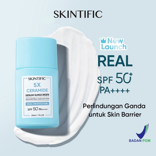 skintific 5x ceramide serum sunscreen spf 50+ pa++++ ini terkenal banget karena bisa memperbaiki skin barrier kulit.