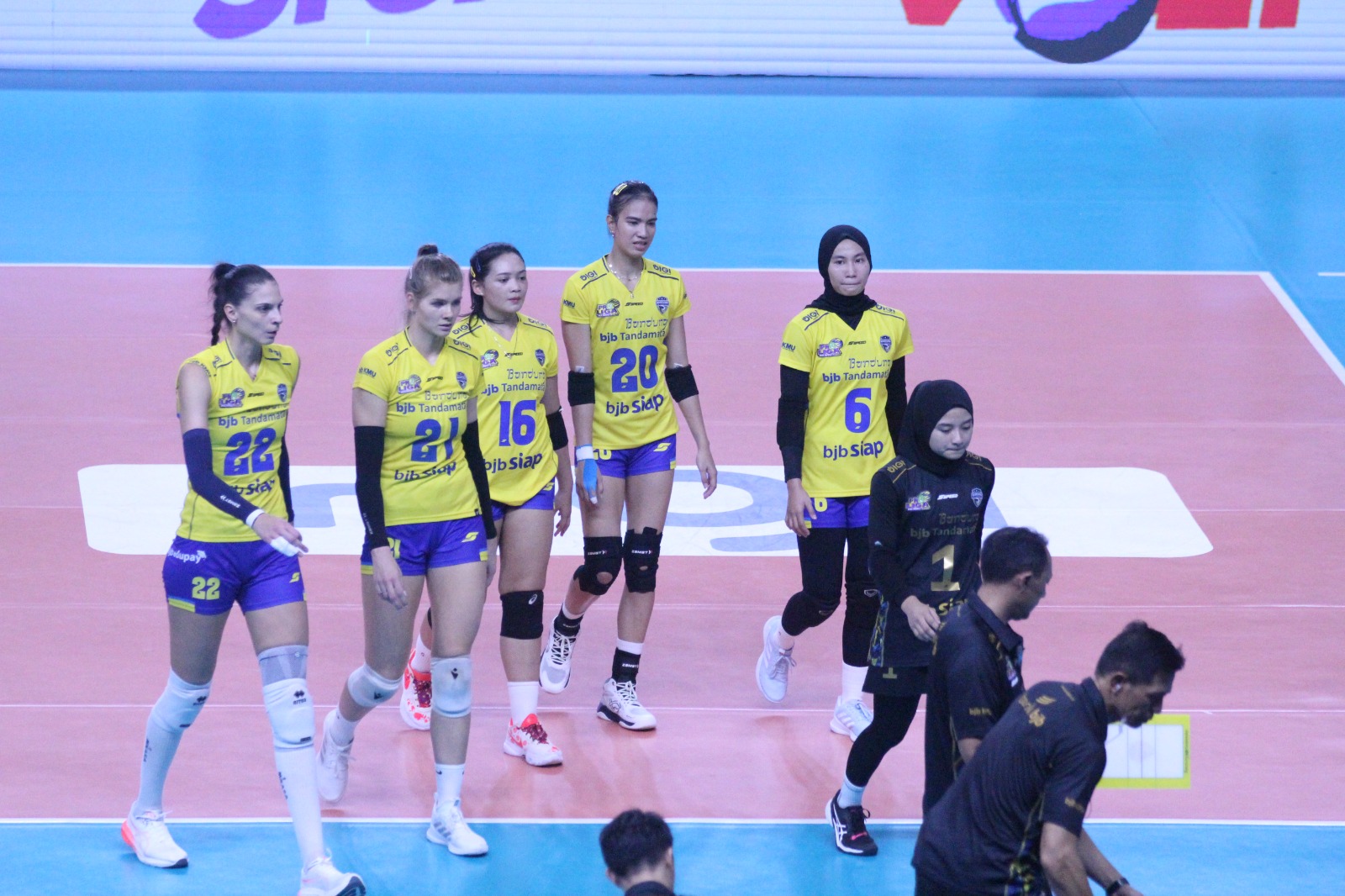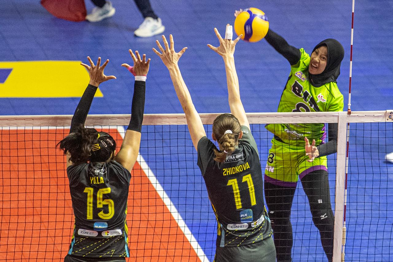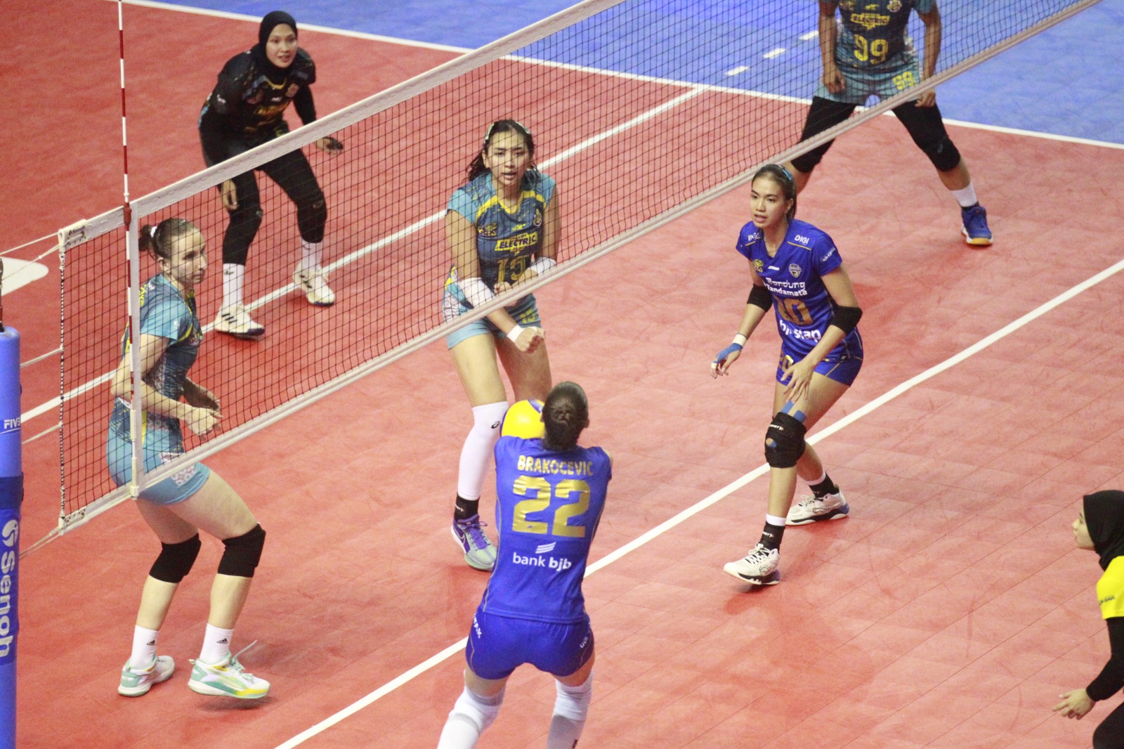 Proliga 2024 saat mempertemukan Jakarta Elektric PLN vs Bandung Bank BJB Tandamata yang berlangsung di GOR PSCC Palembang-pbvsi-
