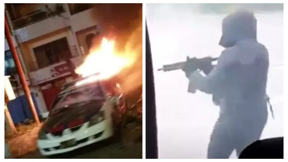 dalam rekaman video tersebut, pintu mobil terbuka dan beberapa pria bersenjata berpakaian hitam muncul.