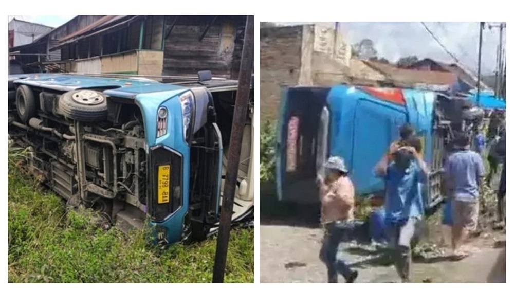 Kecelakaan Bus pariwisata berwarna biru dengan pelat nomor asal Jakarta Barat tersebut terguling dan menabrak sejumlah pejalan kaki, sebabkan 2 orang tewas akibat kejadian tersebut.