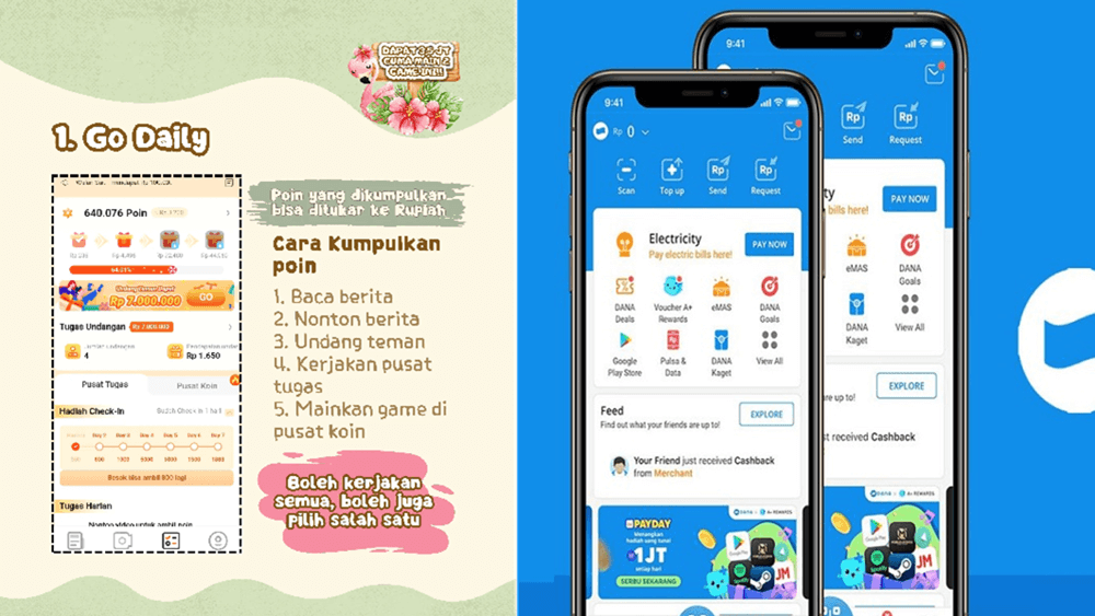 dapatkan hadiah menarik dan tukarkan dengan saldo dana gratis.