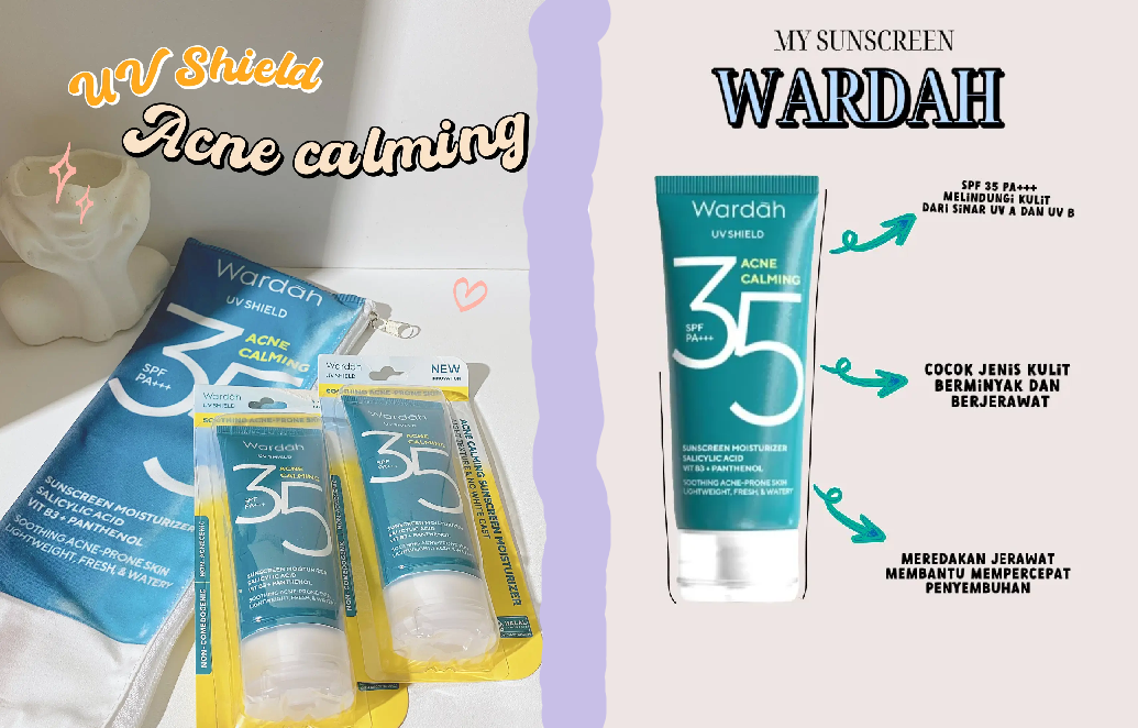 Rekomendasi sunscreen Wardah terbaru ini bernama Wardah UV Shield Acne Calming Sunscreen Moisturizer SPF 35 PA+++.