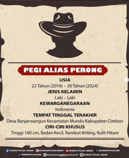 sebelumnya, pegi masuk dalam daftar pencarian orang bersama dua orang lainnya, berdasarkan ciri-ciri yang dirilis oleh polda jabar.