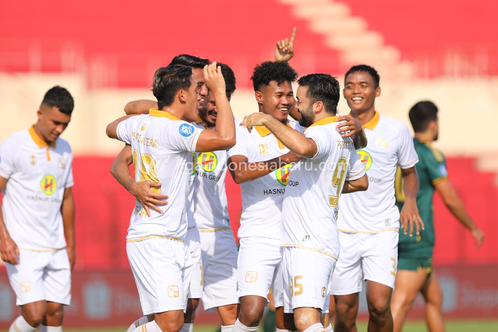pemain barito putera saat merayakan gol ke gawang persib di liga 1-lib-