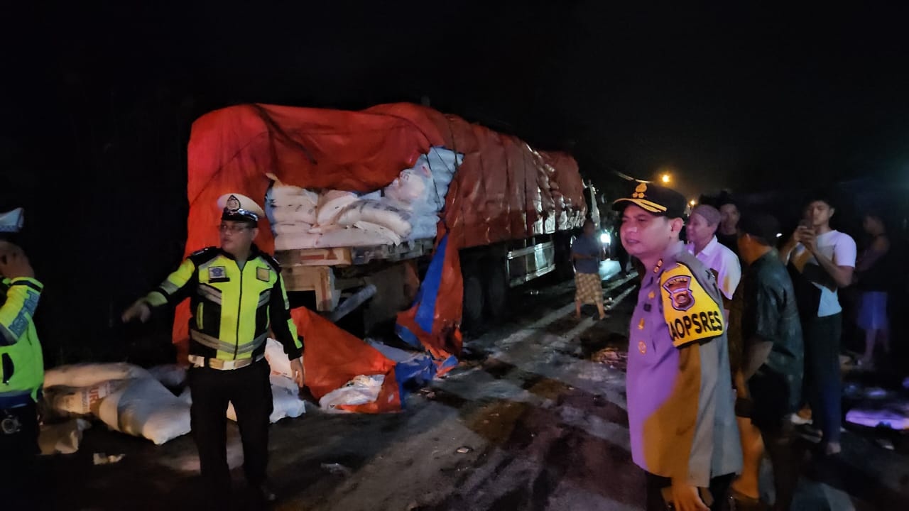 Diwartakan sebelumnya, bus mengalamai kecelakaan lalulintas setelah menabrak truk riler pengangkut pupuk (sebelumnya tertulis truk fuso, red).