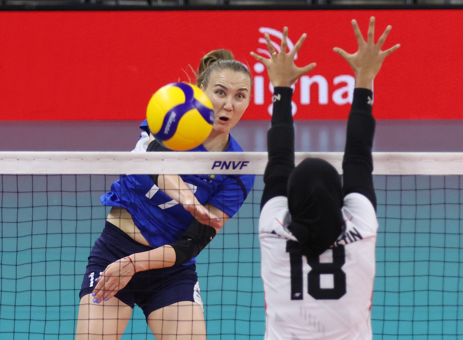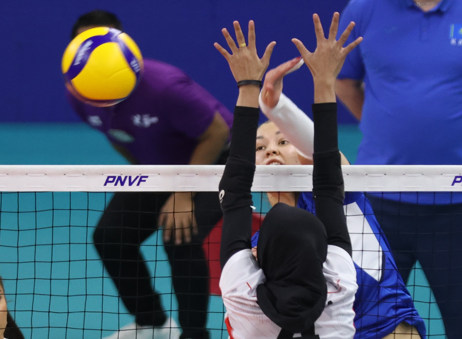 pemain timnas voli putri meenutup pukulan pemain kazakhstan-avcvolley-