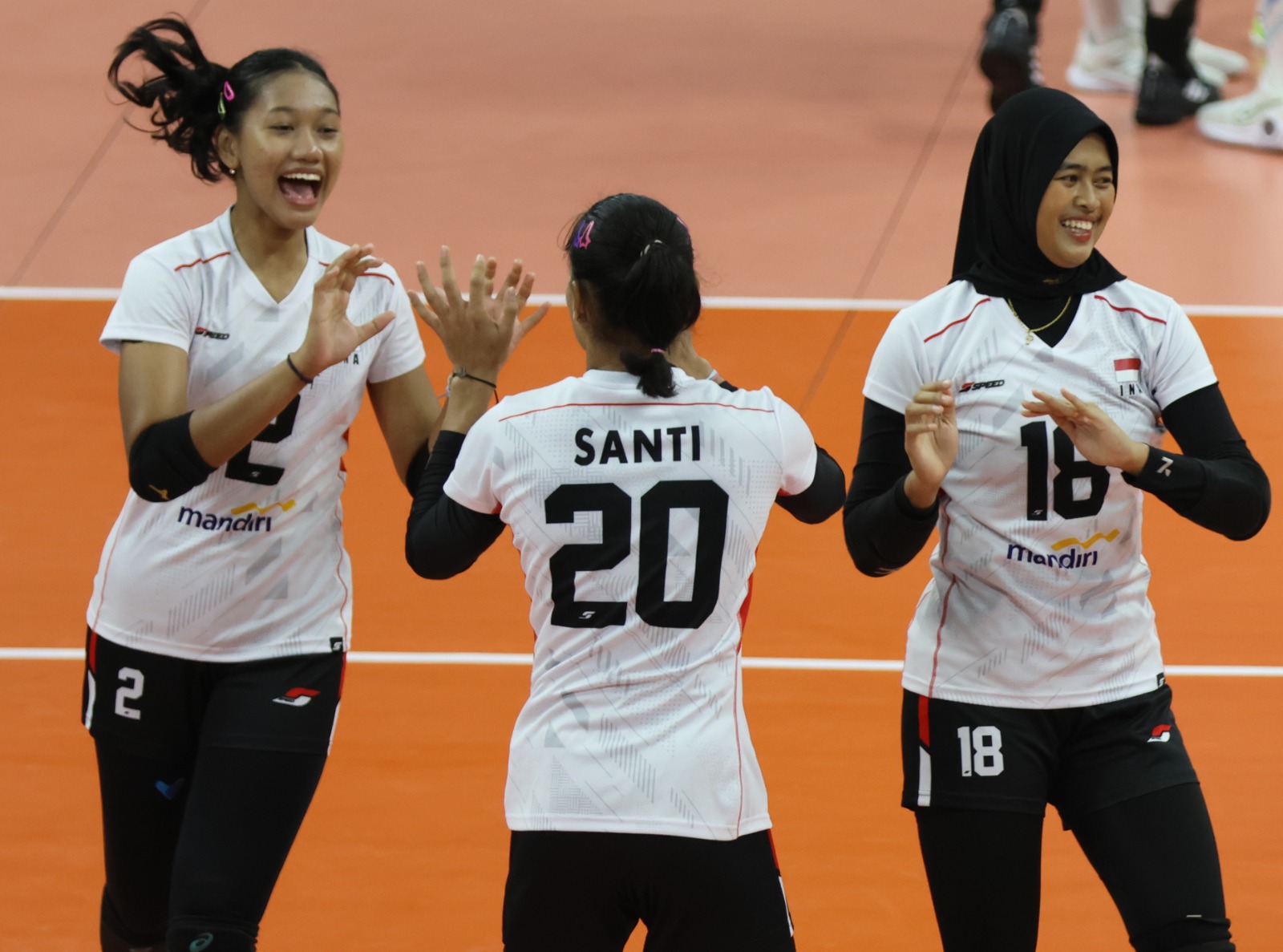 ekspresi pemain timnas voli putri usai cetak poin-avcvolley-
