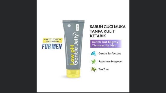 produk pembersih wajah dengan sensasi menyegarkan yang diformulasi khusus untuk pria.