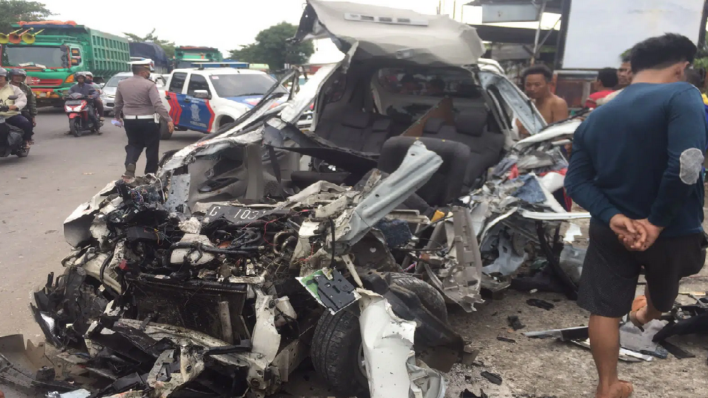 Dari informasi yang di dapat dua orang penumpang mobil honda jazz tewas di lokasi kejadian.
