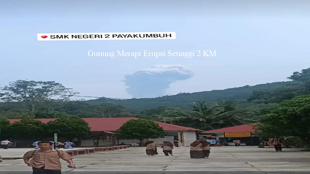 Saat Gunung Merapi Meletus Mengeluarkan Suara Dentuman Keras, membuat warga di daerah Kabupaten Agam bergegas keluar rumah karena panik.