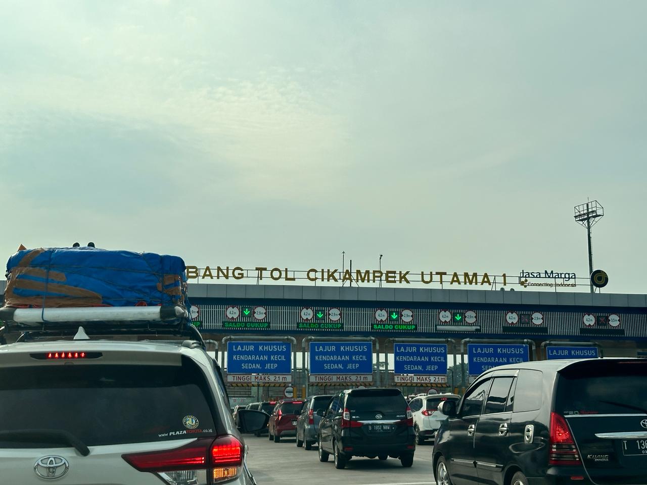 Kendaraan saat antre masuk ke gerbang tol -bacakoran.co-