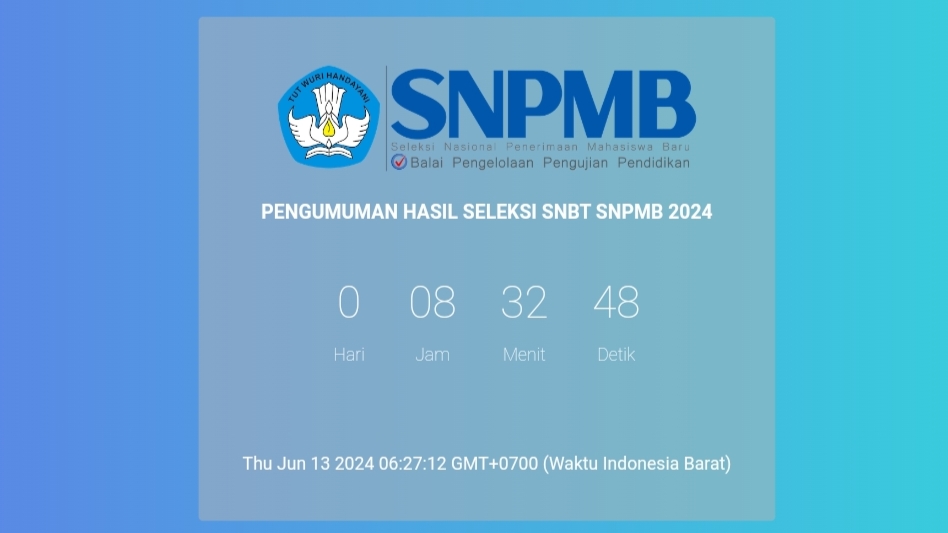 Pengumuman Seleksi Nasional Berdasarkan Tes atau Ujian Tulis Berbasis Komputer (SNBT/UTBK) akan diumumkan pada Kamis, 13 Juni 2024.