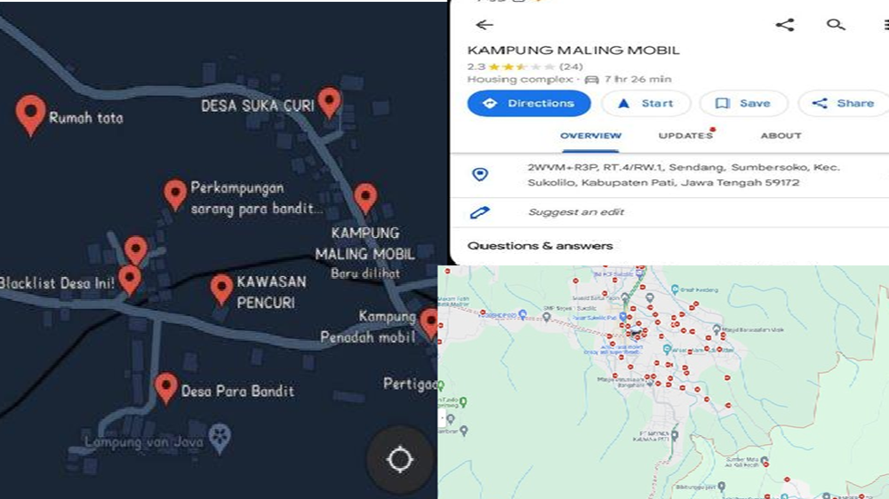Warganet bererak wilayah sukolilo pati di google map mendadak jadi kampung maling--kolase bacakoran/ist