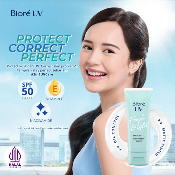 biore uv fresh & bright oil control matte spf 50+ pa+++ jadi salah satu sunscreen populer dari biore lho.