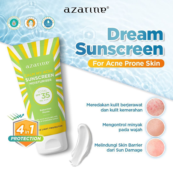 sunscreen azarine calm my acne sunscreen moisturiser spf35 pa+++-gambar azarine official store-