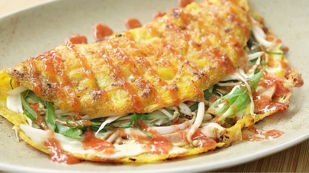 Crispy omelette ini memiliki tekstur yang garing, gurih dan lezat.