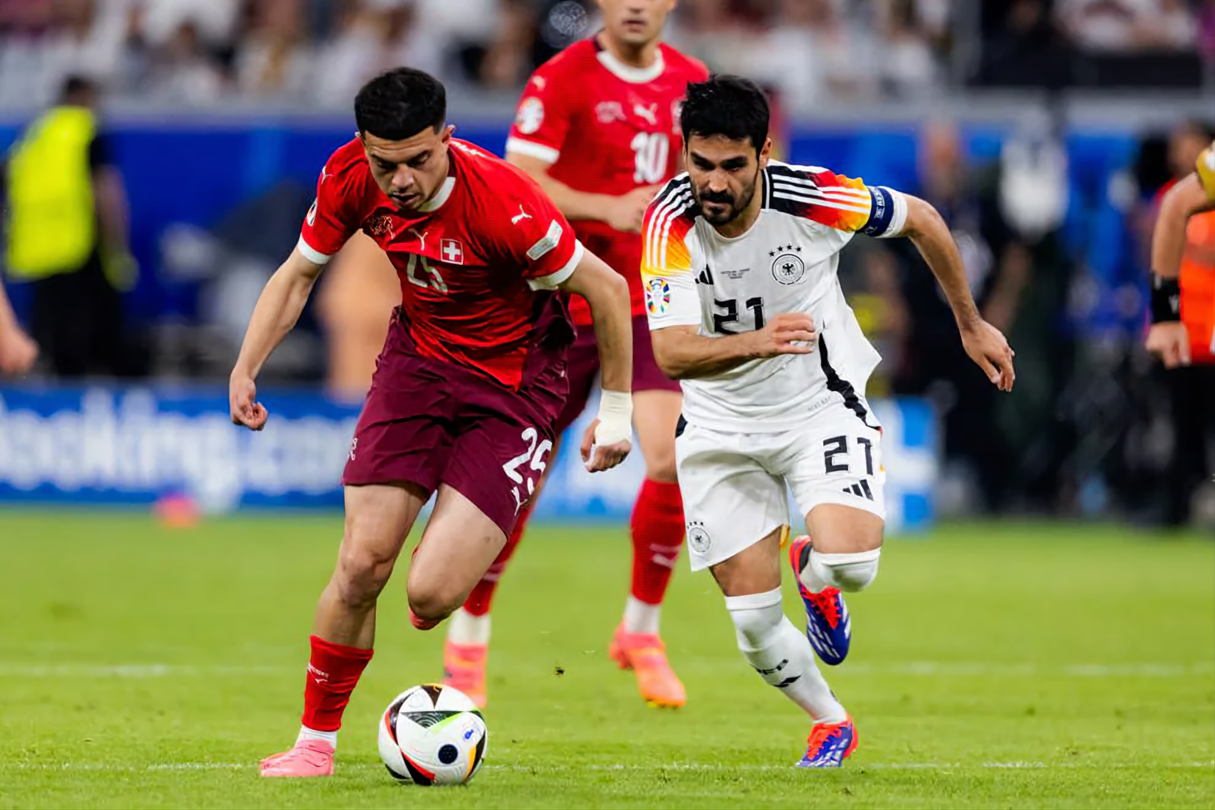 adu sprint pemain swiss dan jerman dalam laga terakhir grup a euro 2024 -euro 2024-