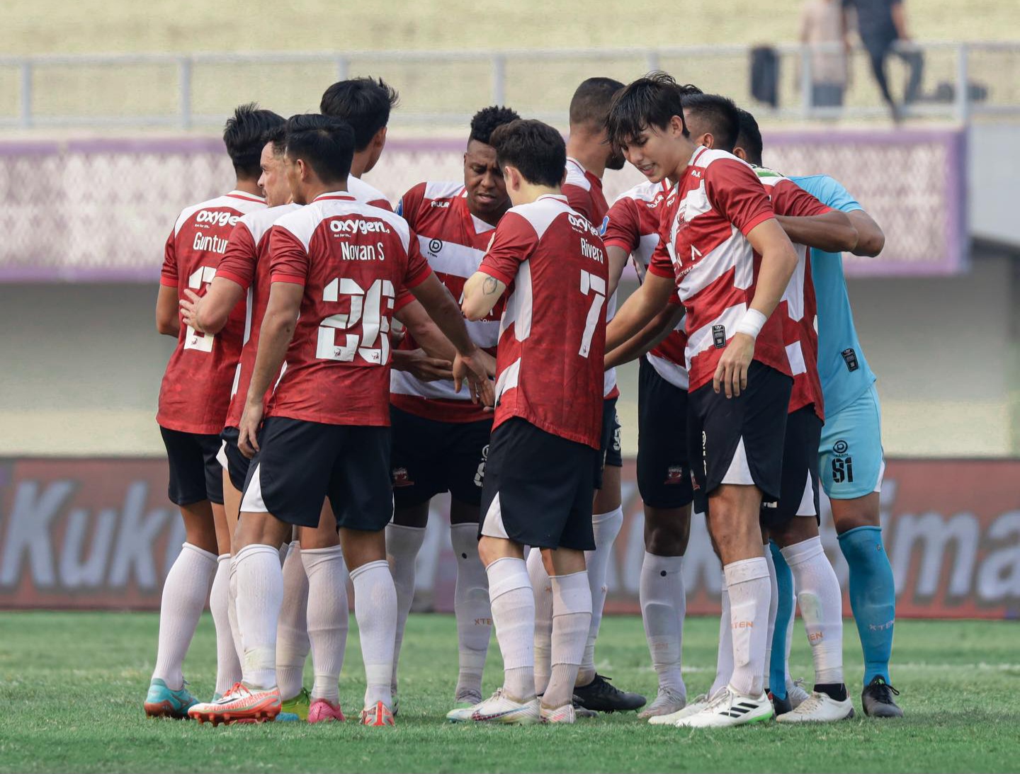 Pemain Madura United saat satukan visi sebelum bertanding-madura united-